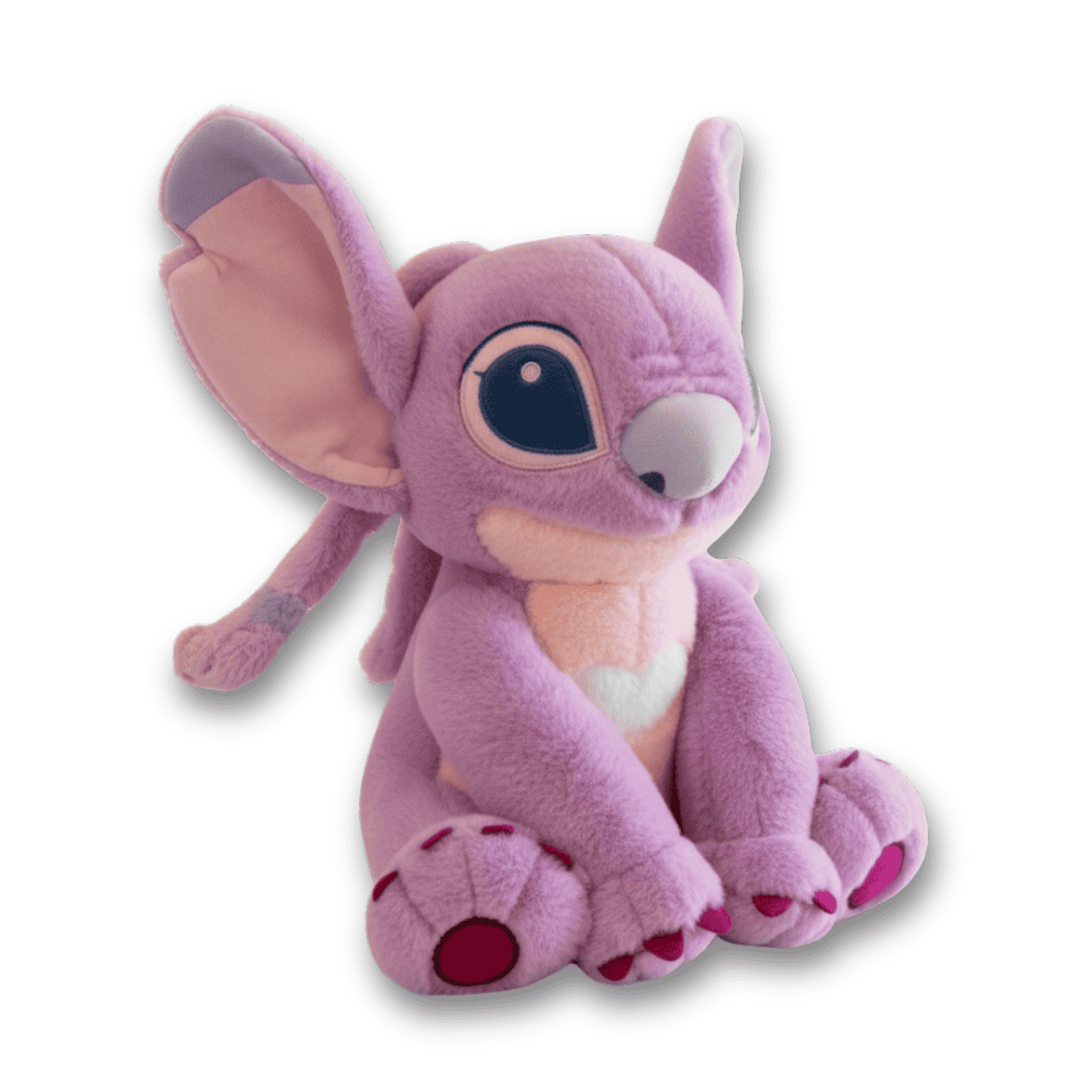 En el universo Lilo & Stitch, «Stitch rosa» tiene un nombre: Angel. Es la Experiencia 624, creada (como Stitch) por Jumba. Es conocida por ser la enamorada de Stitch (su «boojiboo»). ¡Tener su peluche es reunir al dúo más icónico de la Ohana!