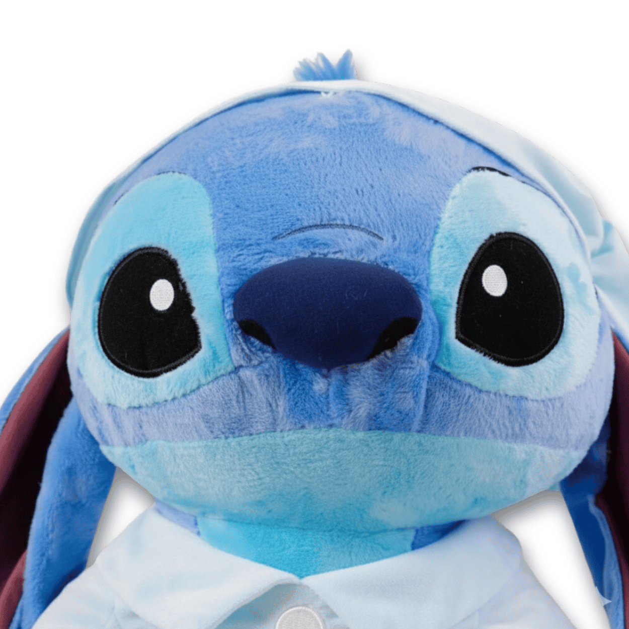 Encuentra al famoso extraterrestre en su versión más entrañable. Vestido con un pijama azul claro y un gorro de dormir a juego, este Stitch tiene un aire pacífico que invita a la calma. Es el compañero perfecto para establecer una rutina de sueño mágica, ahuyentar las pesadillas y tranquilizar a los pequeños (¡y a los mayores!).